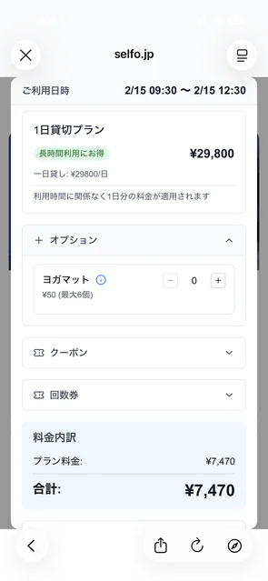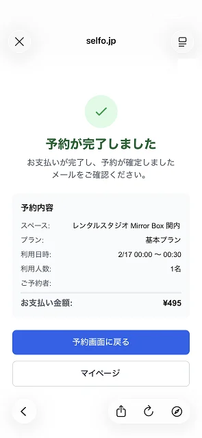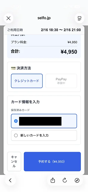 内容を確認し、「予約する」ボタンをタップし、支払いを完了してください。