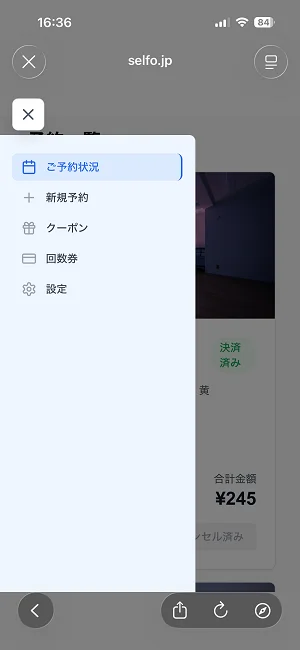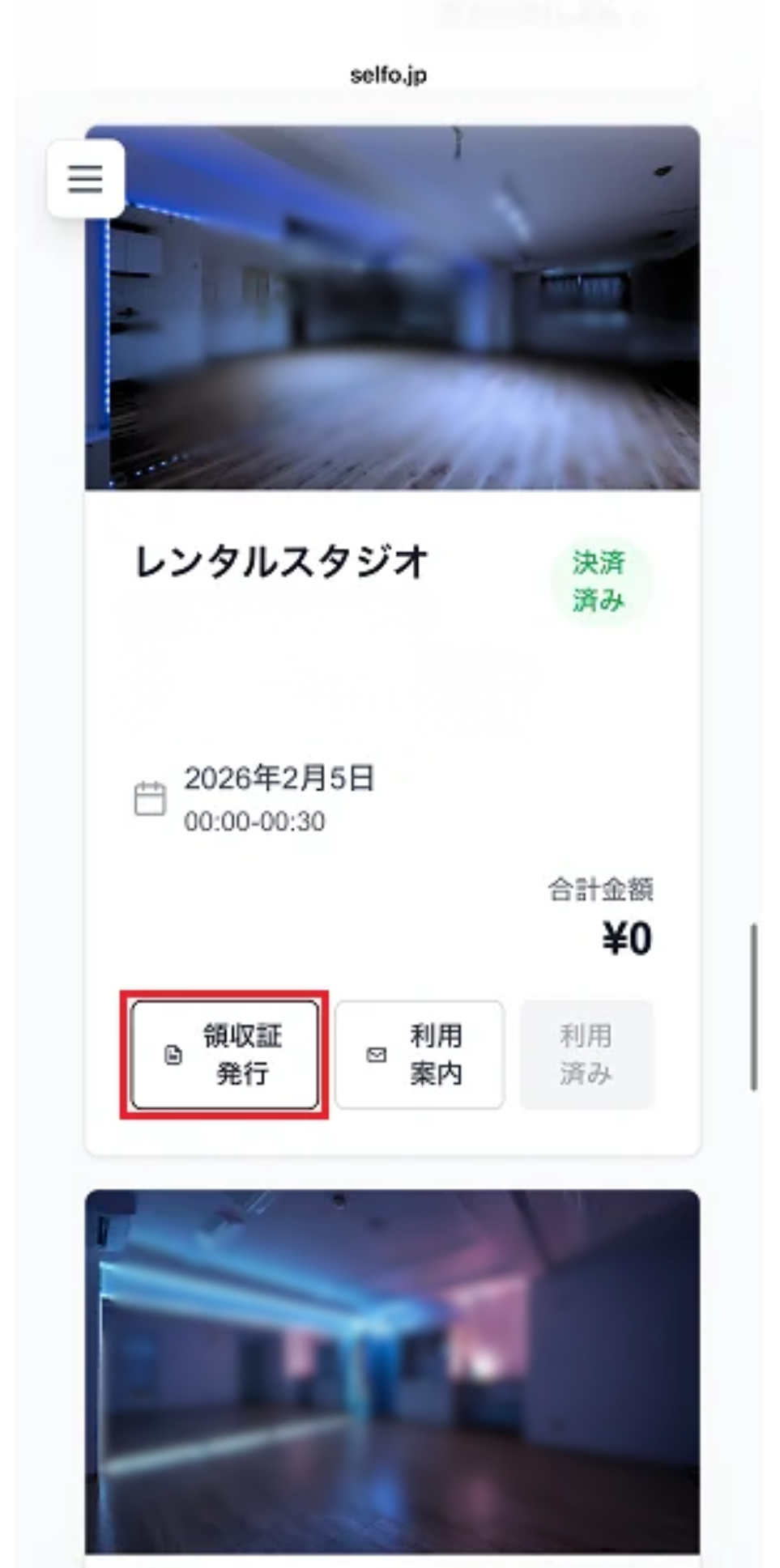3.ご予約状況の該当予約から領収書を発行」をタップ